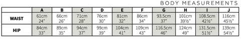 The pattern has 10 sizes which range from a 24" waist & 33" hip to a 45" waist to 54" hip and requires between 2 & 2.5 metres of fabric.