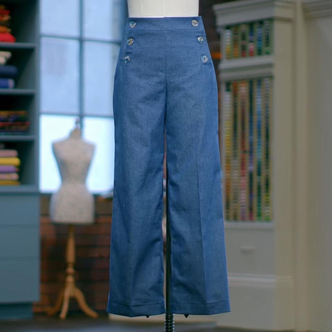 The Pattern Making Challenge saw the contestants make sailor trousers, which in actual fact look like the most difficult-to-make trousers known to man!! Who knew that some trousers have to be assembled like a jigsaw puzzle and excuse me, but exactly how long will it take to go for a Jimmy Riddle when you're undoing and re-doing up all those buttons?! Talk about earning your trip to the loo. You wouldn't want to wear these if your pelvic floor's a bit dodge!!! 😂 If you thought a pair of dungarees were a challenge, you ain't seen nothing yet! I have to say though, I loved the style of them and would very much like to try making a pair for myself. I do like to have a project that's a bit more substantial on the go, so this might be a good one. I'm struggling to find the actual pattern they used though, so if you know what it is, hit me up!