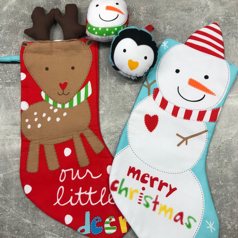 Who doesn't love a stocking with antlers! If you don't fancy making one entirely from scratch, we have the Studio E: Huggable & Loveable panel, which includes 2 pre-printed stockings & 2 x ornaments. You'll just need extra fabric to line the stockings & some toy stuffing for the snowman's hat, antlers & the ornaments. (Fun fact: Our toy stuffing is made from recycled plastic bottles!)