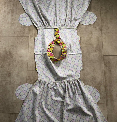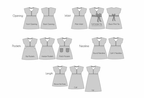 - If you're nervous about sewing buttonholes, I'm pretty sure this dress will slip over a child's head without any fastenings at all, especially the V neck version. There's pattern pieces provided for cutting both the front & back bodice on the fold, so no need to adapt anything. (I haven't got a 5 year old to check this theory out but did spot a YouTube video of someone sewing this dress up without front or back fastenings).