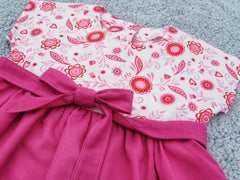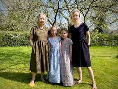Overall, it's a versatile pattern that you could use again & again to get different looks. The full length maxi version would be lovely as a bridesmaid's dress or you could try sewing the skirt & bodice in different fabrics or just the belt in a contrasting fabric such as the examples below. There's also an Adult's Kinjarling pattern too if you fancy mummy & me outfits!