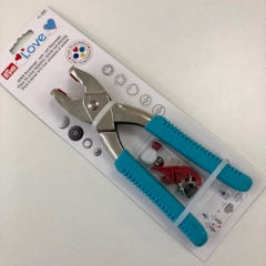 We stock the Prym Vario Pliers which are a great tool for not only installing snaps but jeans buttons, rivets & eyelets too. The pliers come with a fixing which will pierce through your fabric. Here is our current collection of Prym Snaps