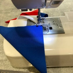 Sew one of the straight edges at 1/4" (It doesn't matter which one, as they should be exactly the same but it's easier to offer the straight edge up to the needle rather than the pointy end) See below.