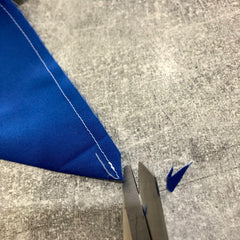 Before you turn each piece through, snip the corners to reduce bulk. Then, turn them through to the right side using your turning tool weapon of choice to get the pointy bits nice & sharp (this is the longest part of the process & quite honestly you don't have to be too precious about this; you won't have Patrick & Esme coming around & criticising your points - it's just bunting!)