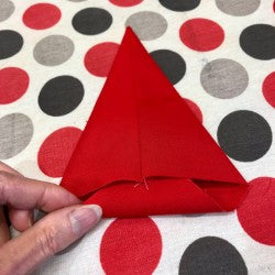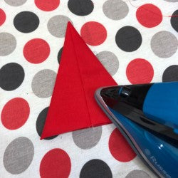 Make the triangles as big or small as you like, I chose 6" as it was good use of the fat quarters. Space them further apart for a longer string.