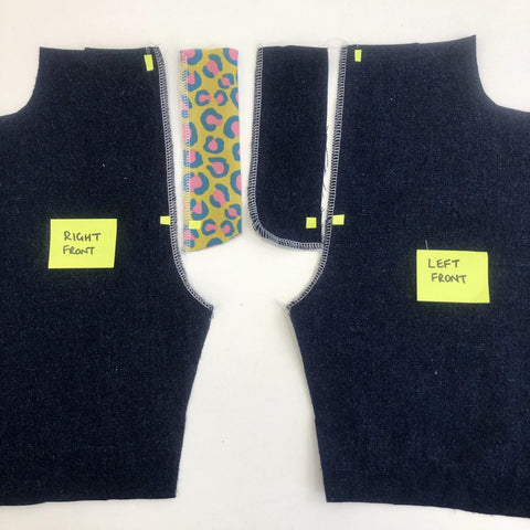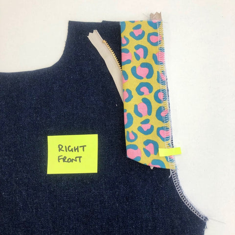 I've made the fly extension in a bright fabric to make it easier to see which pattern piece I'm referring to.