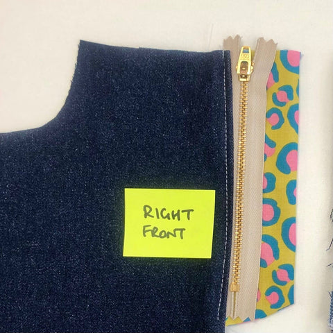 - Pin the zip to the FLY only, make sure you're not pinning to the Front of the jeans & sew. Using a zipper foot, sew 1 row of stitching close to the edge of the zip tape & then another row close to the teeth.